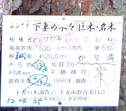 大木「欅」で下妻市から1995年に名木の指定を受けています.