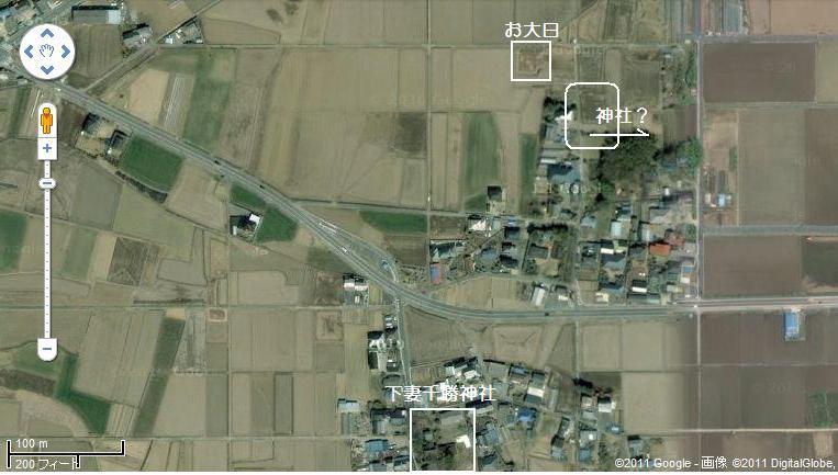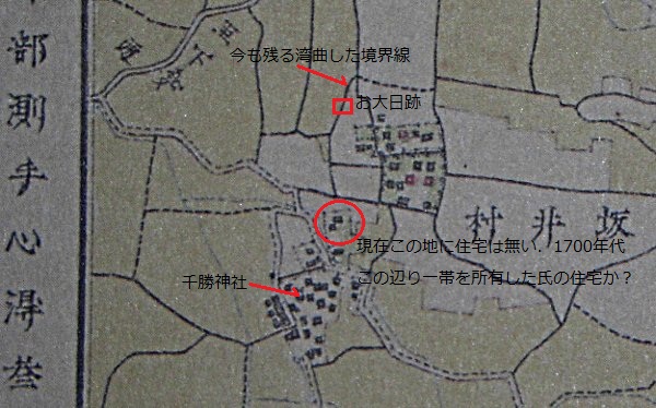 明治時代の地図上にも坂井村北部お大日付近に神社の遺構の形跡は残念ながら見あたらない.